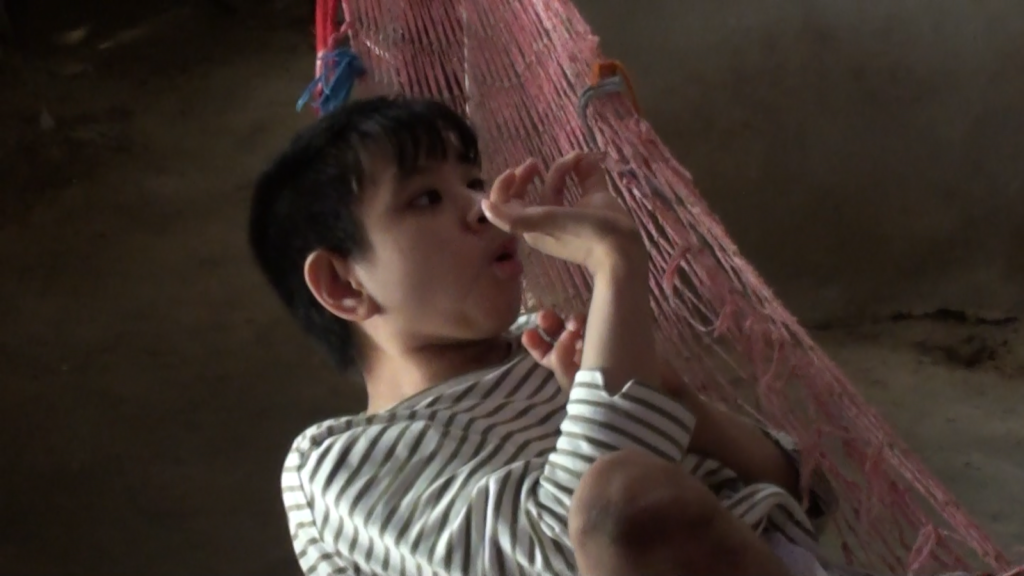 Đến huyện Ninh Hòa, tỉnh Khánh Hòa, chúng tôi được Sư Cô Thích Nữ Chơn Tâm dẫn đến thăm hai em khuyết tật ở cùng một xóm. Phải đi bộ qua nhiều mảnh ruộng lúa, qua những bờ ruộng nhỏ xíu, rồi đến một căn nhà tranh vách đất nhỏ tí tẹo. Thực tình từ nhỏ cho đến nay tôi mới thấy một cái nhà rách nát đến như vậy. Vào nhà tối thui và mùi khai nước tiểu bốc lên. Trên cái võng rách nát có một em gái đang nằm không có mặc quần, người cha vội lấy quần mặc cho con. Em cũng không ngồi dậy và nói năng gì được, cuộc đời gắn chặt với tấm võng đong đưa theo sự xoay trở của em.